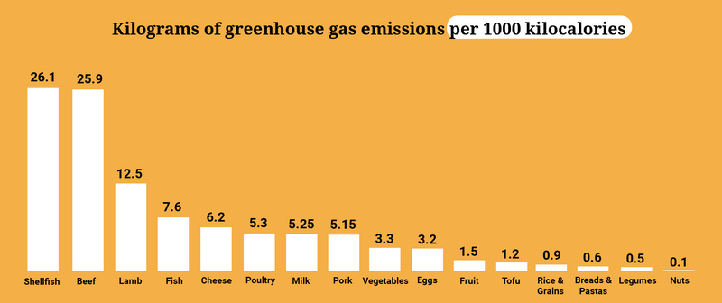 As this graph shows us, the difference is stark. There’s a lot to be gained by switching meat to a lower emission one. But what’s happening on the aggregate?